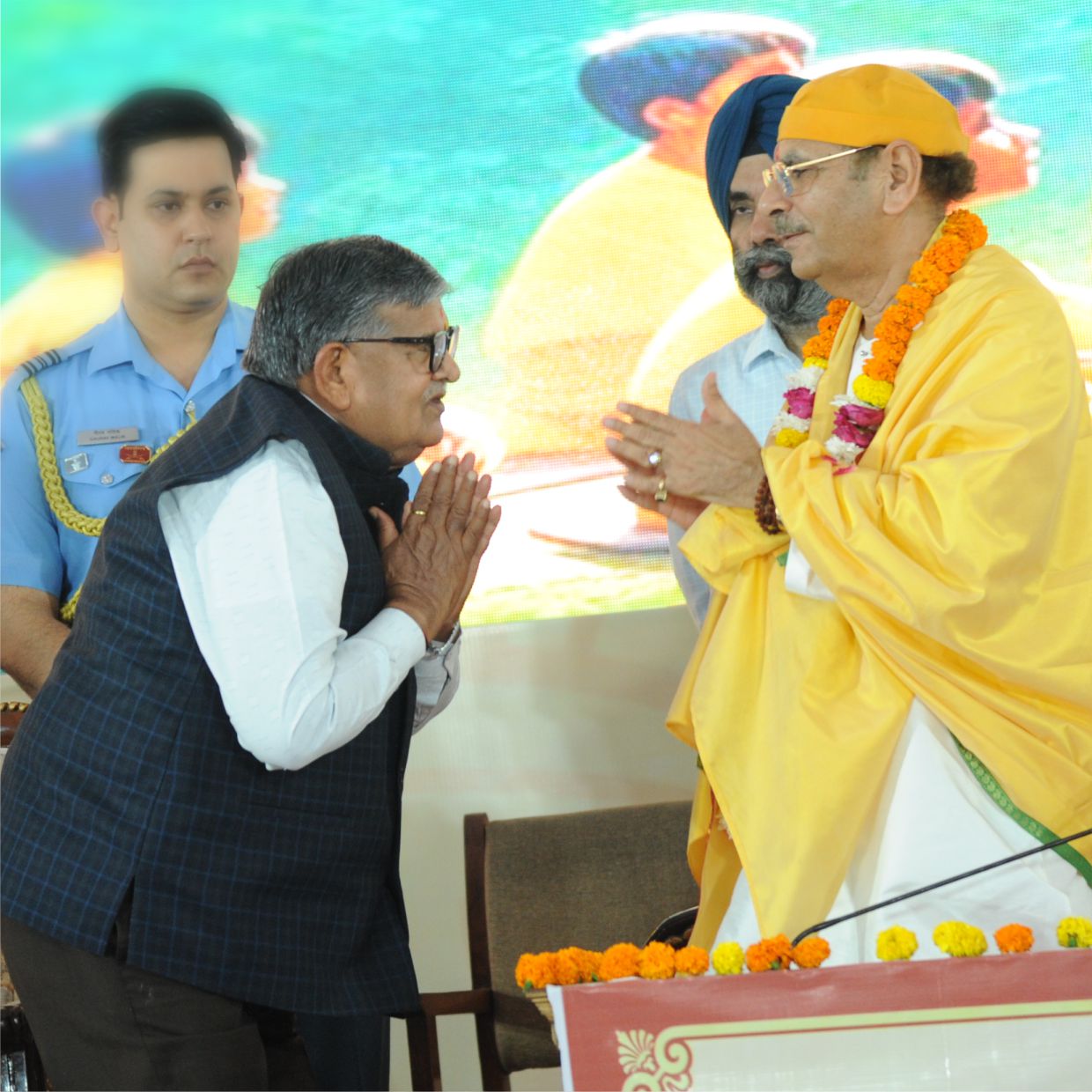 His Holiness Sudhanshu Ji Maharaj has shared the stage with eminent figures including Defense Minister Rajnath Singh Ji, Lok Sabha Speaker Om Birla Ji, Delhi Chief Minister Smt. Rekha Gupta Ji, Baba Ramdev Ji, and Balkrishna Ji and many more dignitaries.