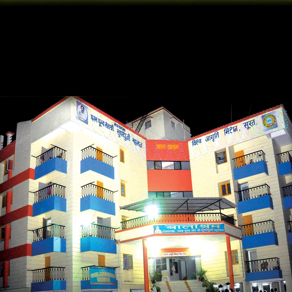 Through the Mission, Maharaj Shri has delivered more than 8,000 discourses, and over 3 million seekers have been initiated into meditation and spiritual practice. At present, its projects include 9 schools, 5 children’s homes, 2 Gurukuls, 2 hospitals, and 1 orphanage. Over 500 cows are cared for daily, 2.7 million patients have been treated, more than 40,000 cataract surgeries performed, and currently 1,100 orphan children and over 1,200 girls are receiving education and training.