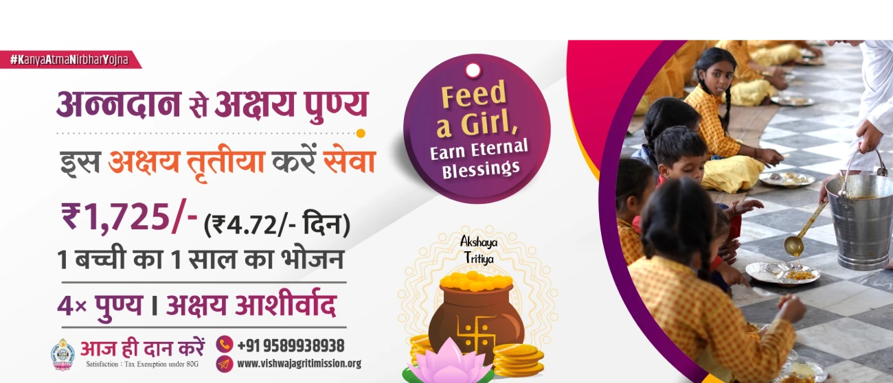 Offering Maha Annadaan on Akshaya Tritiya nourishes the body, supports education, and sustains life. This sacred act for Shakti-form girls becomes the foundation of a self-reliant future.