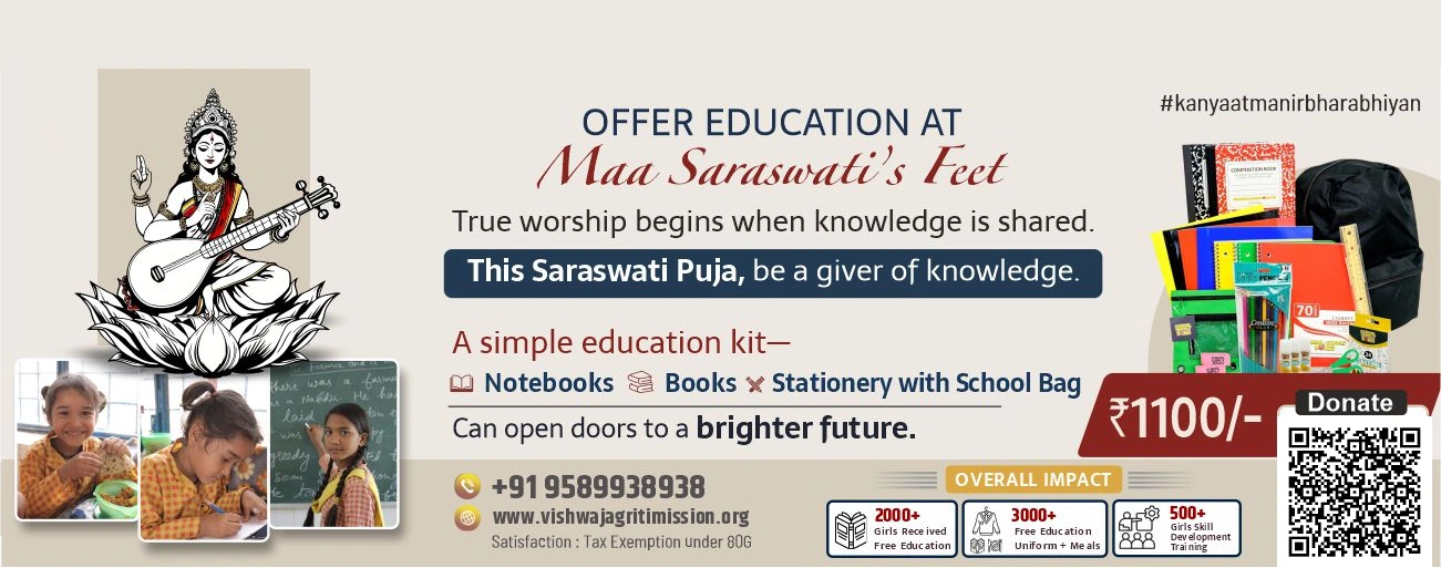 This Saraswati Puja, invite Maa Saraswati’s blessings by supporting a girl child’s education.