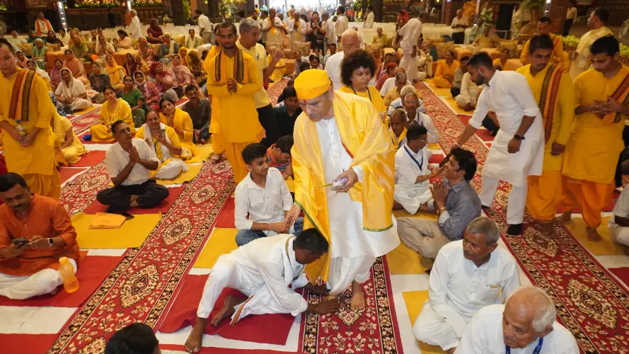 On the sacred day of Guru Purnima, seekers sit in the presence of Maharaj Shri and awaken the strength hidden in the Guru Mantra they received. This Sadhana is about going deep into meditation, letting the energy given by the Guru come alive again within.