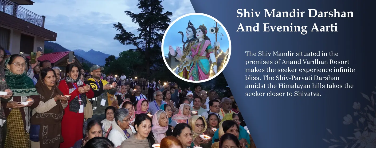 Manali, the Tapabhoomi of Rishis, located in the lap of Himachal, has been a place of penance for sages and saints since time immemorial. Anand Vardhan has been built with the inspiration of Maharaj Shri in such a divine place, amidst the covered peaks and the gardens of the cedar tree ranges.