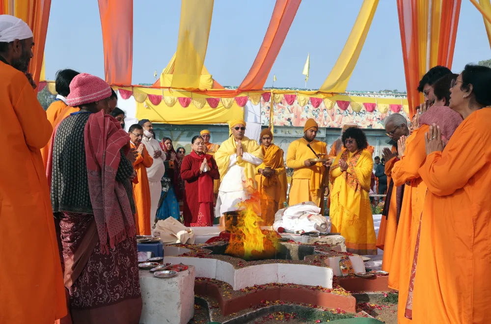The sacred fire awakens new energy and helps one embrace a more harmonious and conscious way of living. On this occasion, the New Year Yagya is conducted, where divine offerings are made by revered Acharyas and young Rishis.