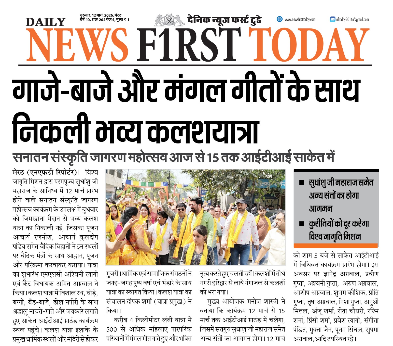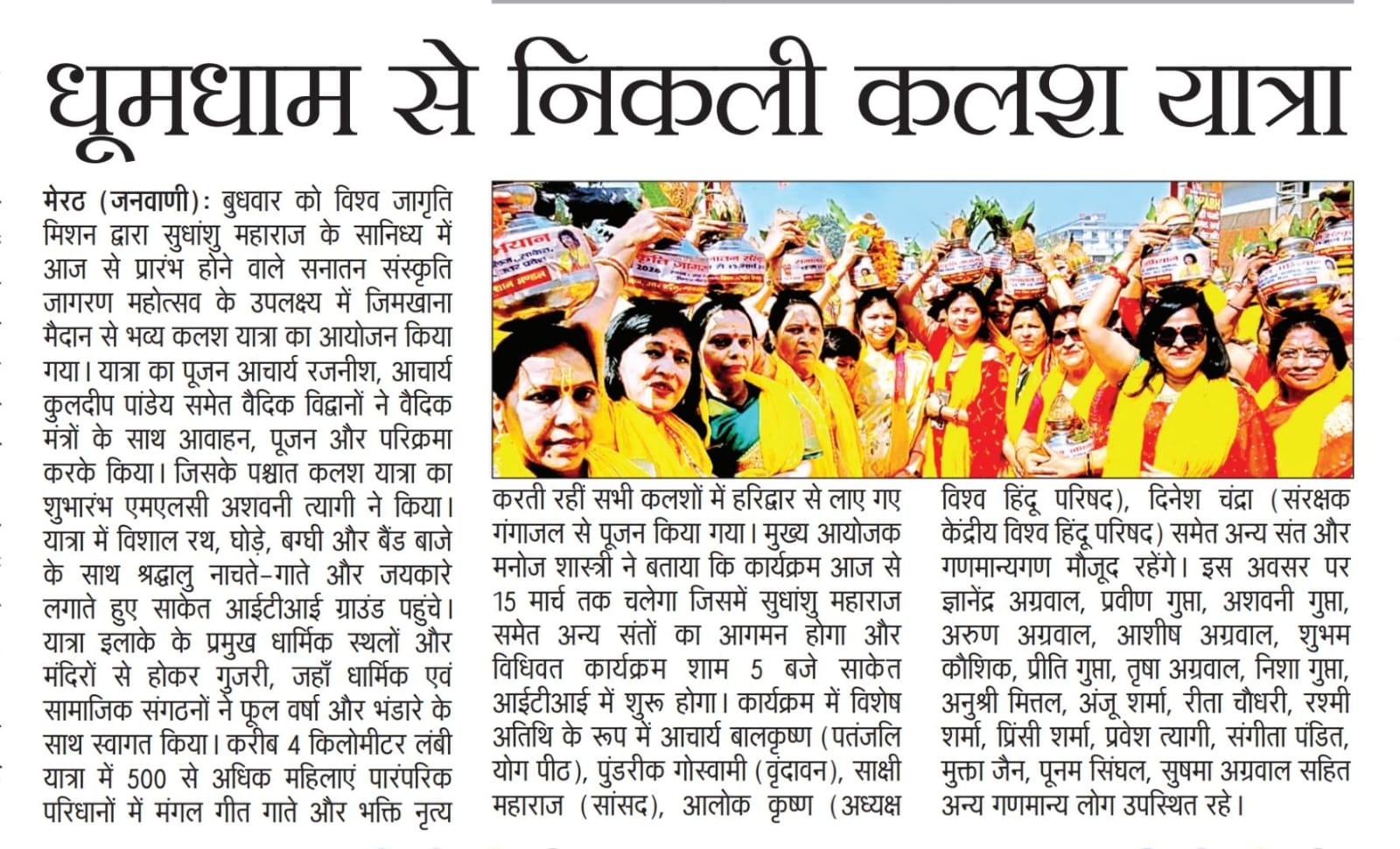 Vishwa Jagriti Mission's grand Kalash Yatra in Meerut | Sanatan Sanskriti Jagran Program