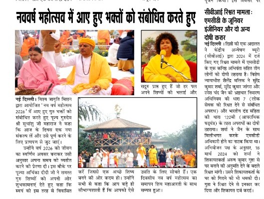 On the occasion of the New Year spiritual festival, Sudhanshu Ji Maharaj addressed devotees with profound messages of devotion, discipline, and faith. The satsang inspired people to begin the new year with spiritual awareness, moral values, and inner peace. Through his guidance, devotees were encouraged to strengthen their belief in God, adopt positive practices, and walk the path of bhakti for a balanced and meaningful life filled with harmony and spiritual growth.