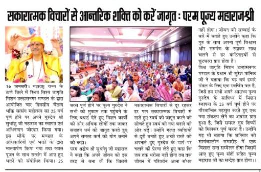 In his inspiring discourse, Pujya Sudhanshu Ji Maharaj said that positive thoughts awaken a person's inner strength. When a person frees themselves from negative thinking and engages in self-reflection, peace, energy, and self-confidence flow within them. According to Maharaj Ji, spiritual practice and positive thoughts simplify life's challenges. Through spiritual gatherings (Satsang), a person recognizes their purpose and fulfills their duties towards society and family more effectively. This message is extremely relevant in today's stressful life.