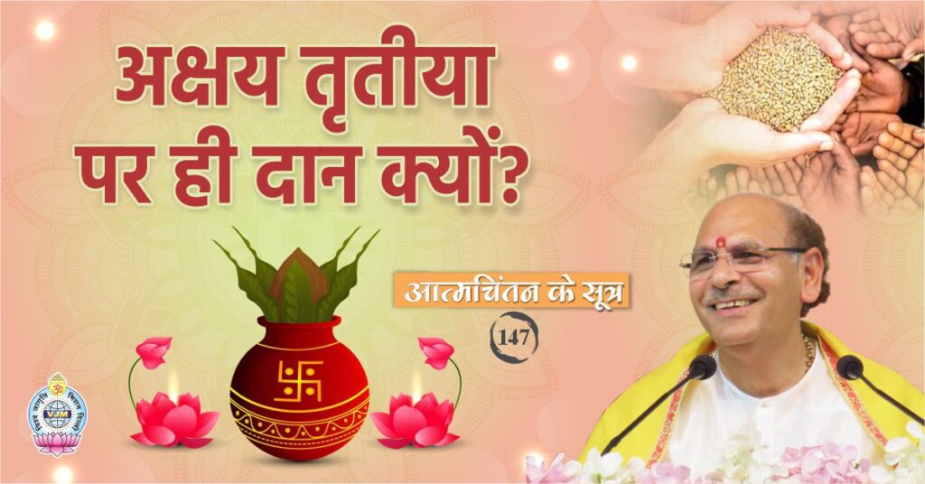 Just as you sow a hundred grains of wheat, you get a crop that increases thousands of times in return. Similarly, the charity done, the service done with hands, all get collected in your account as a garden of virtue. Sadhaks start their Sadhana from Akshaya Tritiya by praying that O Lord! May our devotion be everlasting, may it never diminish, may we keep moving ahead on the path of devotion, may our meditation be successful and may we make our life a successful one!