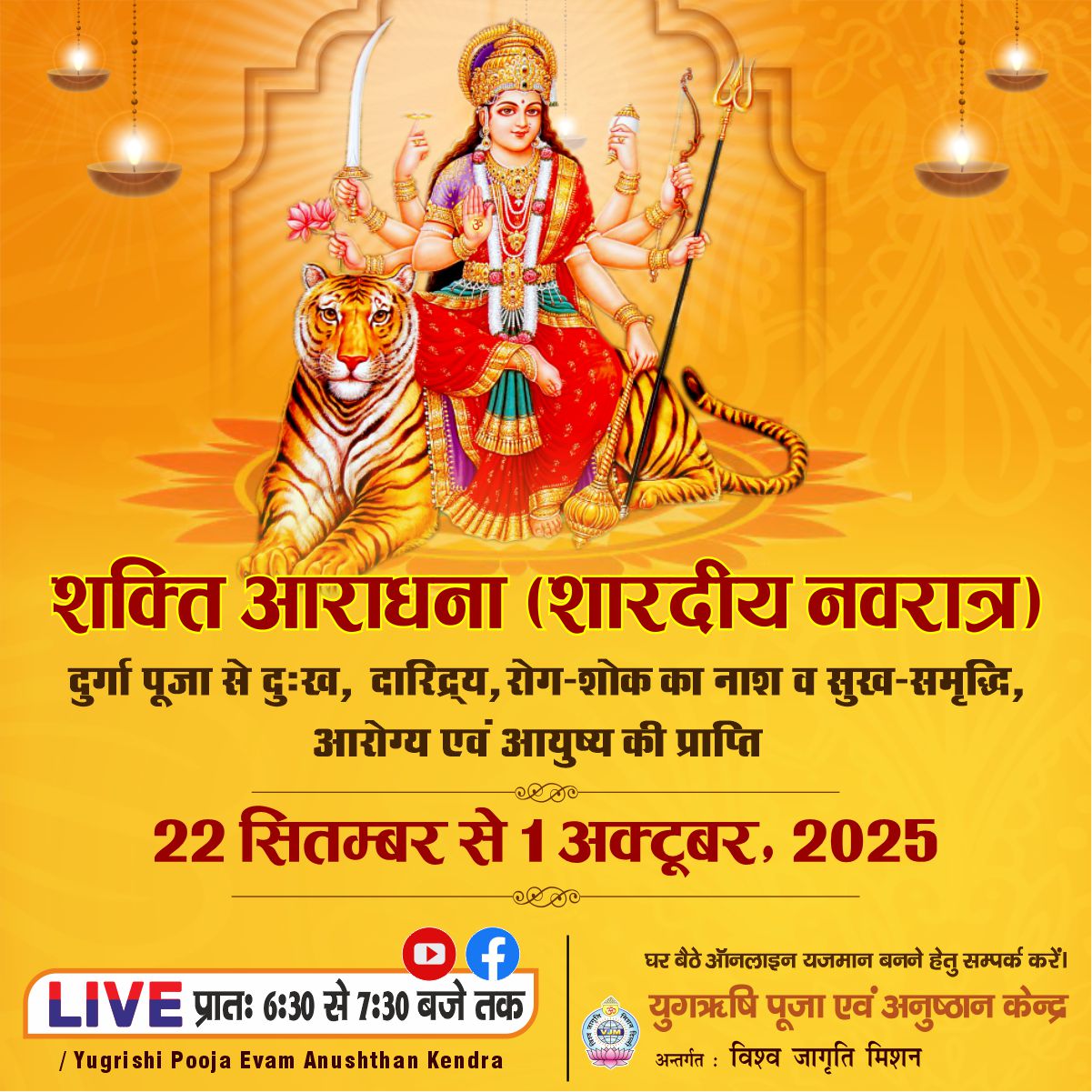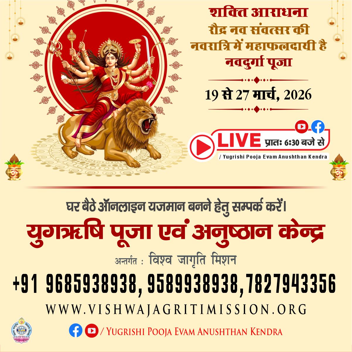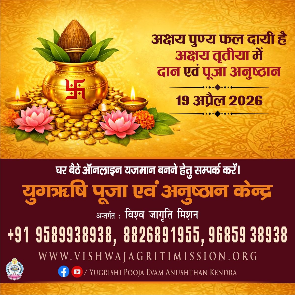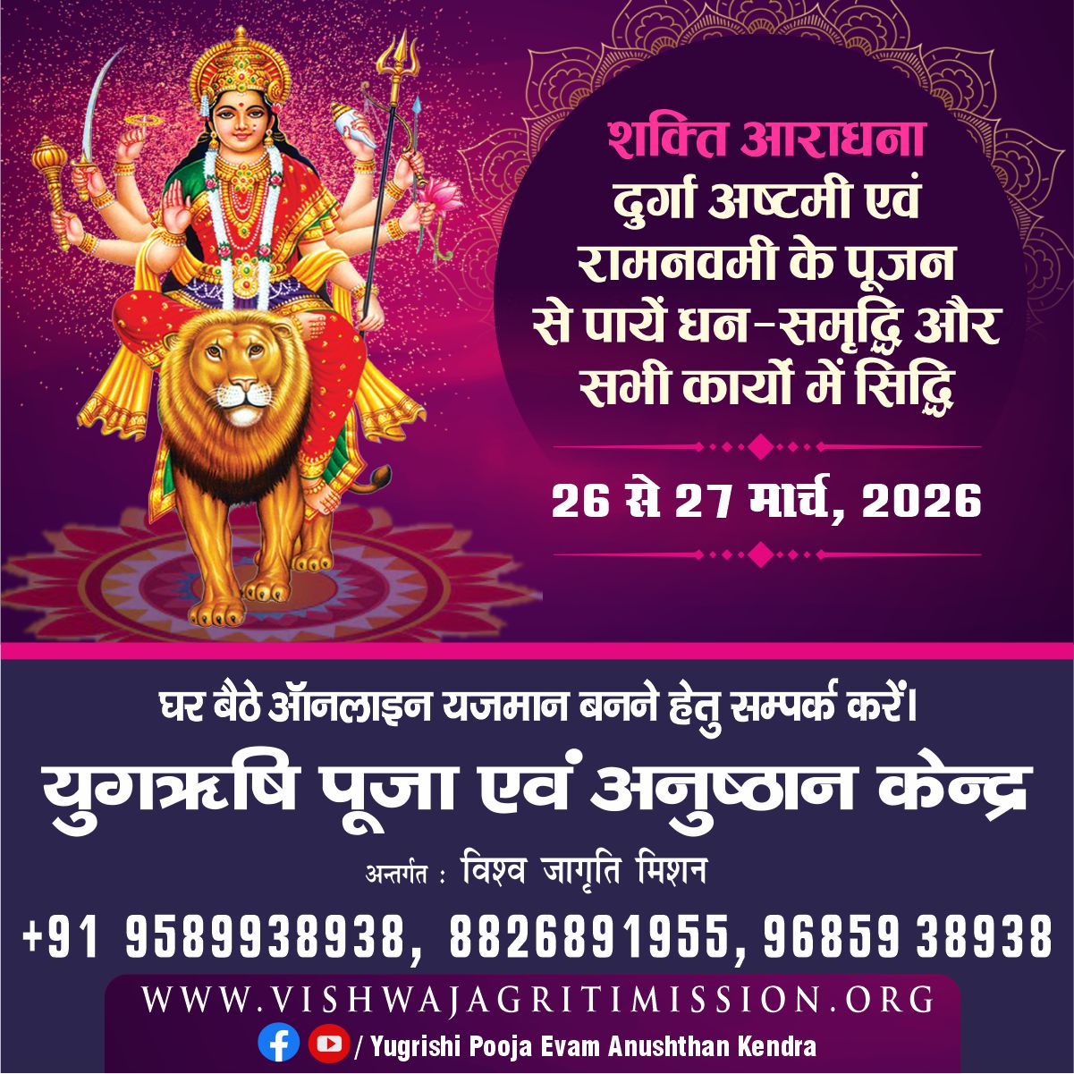 The Yugrishi Anushthan Kendra of Vishwa Jagriti Mission is a sanctified space for devotees and seekers where, through the divine resonance of Vedic mantras and sacred rituals, solutions to life’s challenges are discovered and self purification is achieved. It is not merely a place of worship but a center of energy where, by the Guru’s inspiration and divine grace, streams of happiness, peace, and prosperity flow into the lives of the yajmans.