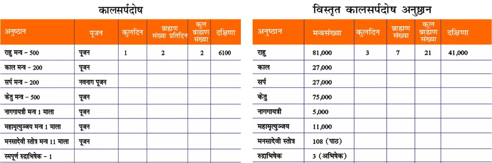 It is said that when performed with Vedic procedure and with the worship of Lord Shiva, the Serpent Deities, and Rahu-Ketu, then the turbulent conditions of life are removed, bringing peace, prosperity, and success to the native.