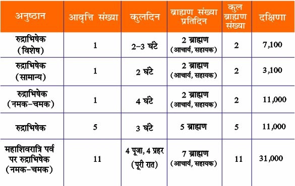How much does it cost to perform Rudrabhishek at Yugrishi Anushthan Kendra?