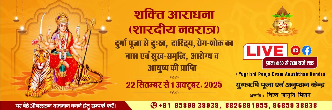 With the resolve that the blessings of Mother Durga remain upon all the devotees, His Holiness Sadgurudev Shri Sudhanshu Ji Maharaj has organized a grand ritual of "Shakti Aaradhana" for all the devotees on the occasion of Sharadiya Navratri Mahaparva from Monday, September 22, 2025 to Wednesday, October 1, 2025, from 6:30 am to 7:30 am every day at Ananddham Ashram.